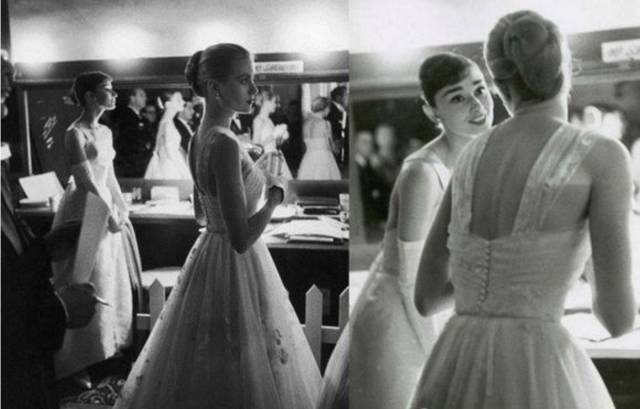 1956年 在奥斯卡颁奖典礼后台 格蕾丝·凯莉和奥黛丽·赫本 一个还没有美颜和PS的时代