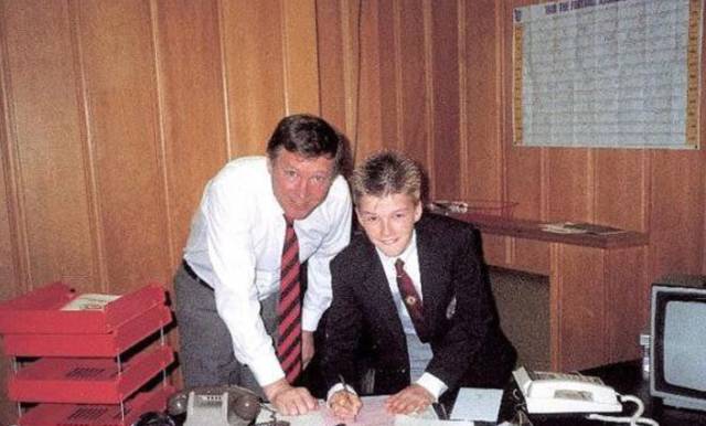 14岁的贝克汉姆和曼联签约, 好一个小鲜肉啊~