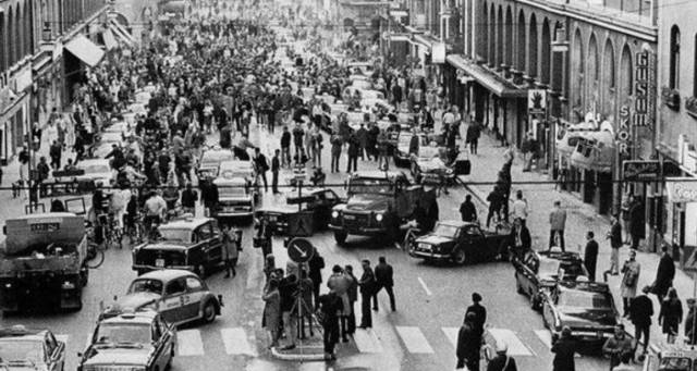 1967年9月3日 瑞典将道路通行方向由靠左改为靠右后的第一天 可以,这很像中国赶集!