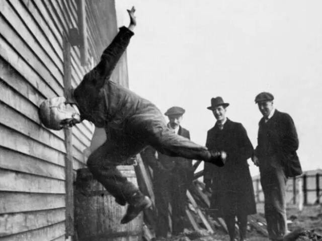 上世纪20年代试验橄榄球头盔的方法 看着就好痛啊-啊-啊!