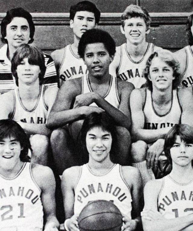 1979年 奥巴马在母校与其他篮球队队员的合影。