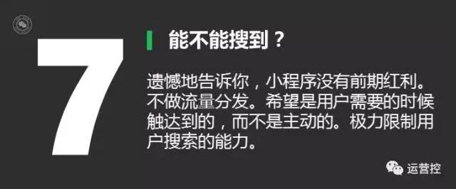 会有非常多人说我们早一点做小程序,然后就可以很好的利用这样一个前期的流量,这里特别遗憾地说,我们更希望小程序不是基于一种流量分发的方式获取用户,就像刚才说的我们更希望小程序是通过一种用户触达的方式,当用户需要的时候触达到它,然后使用它,而不是不需要的时候推荐给他使用。
