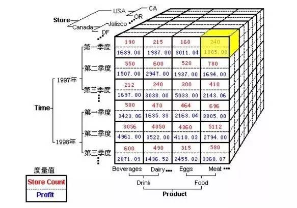 数据运营中的常见痛点,是明知道转化漏斗上某个环节的通过率较低,却找不到提高的途径。常用的解决思路,就是把数据打细,分解到各个维度上分别观察,这往往能发现产品或系统上的问题。如果多个维度能够灵活组合观察数据,就成了一个数据魔方(Data Cube)。下面的图虽然与互联网产品运营的漏斗数据没关系,但是原理是一样的。