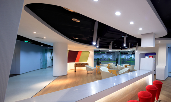 当然,发家致富后的腾讯已然一副顶级科技公司的设计,办公室里满满的科技感!