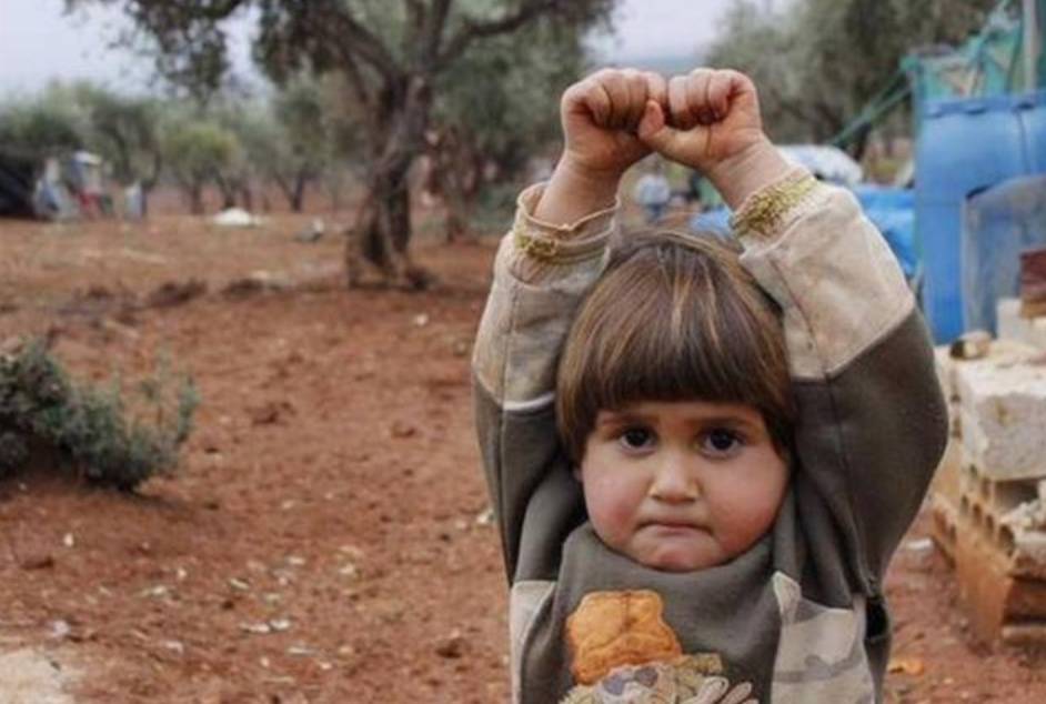 一个叙利亚小孩以为相机是枪,马上害怕地举手投降。