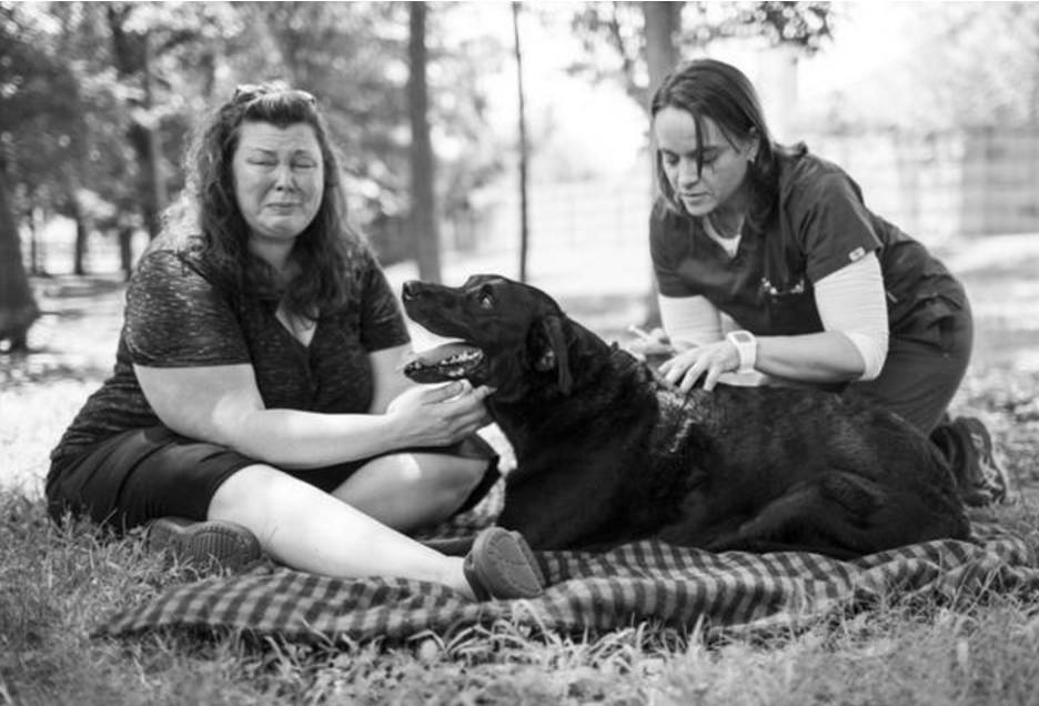 安乐死的前一天,患病的狗狗和主人在一起,享受最后的欢乐时光。