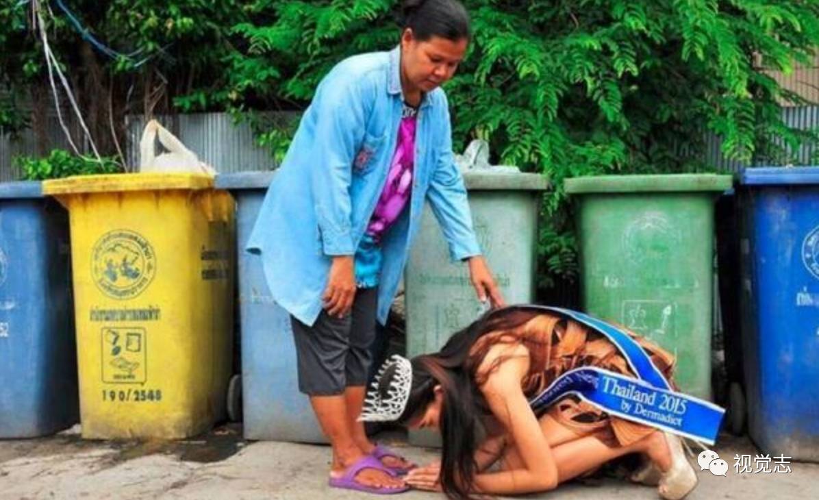在赢得2015年的泰国小姐比赛冠军后,Khanittha回家跪在独自抚养自己长大的拾荒母亲面前。