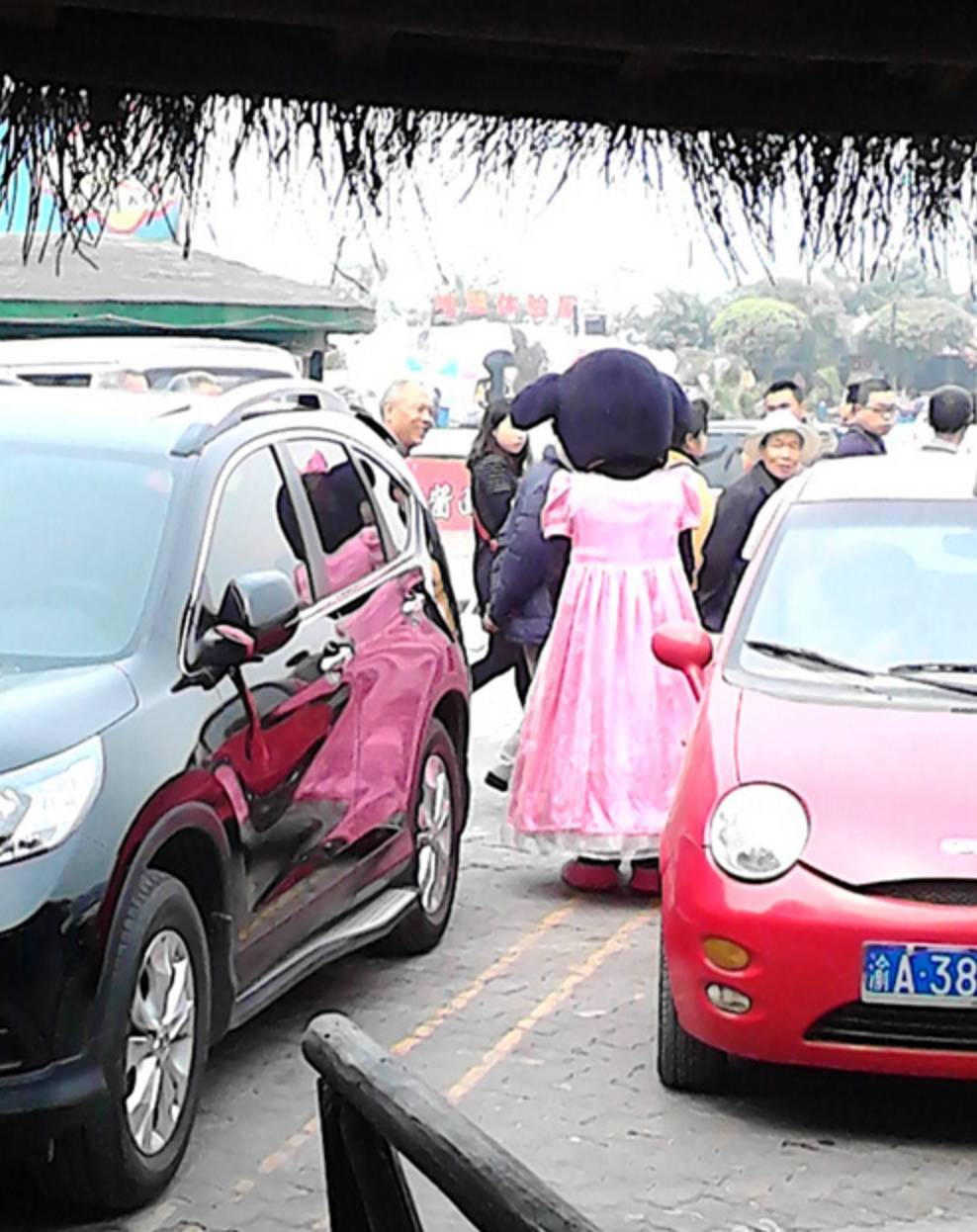 重庆街头,一个米老鼠玩偶在为商家做宣传,但当米老鼠摘下头套的时候,这个米老鼠却萌得让人心酸……