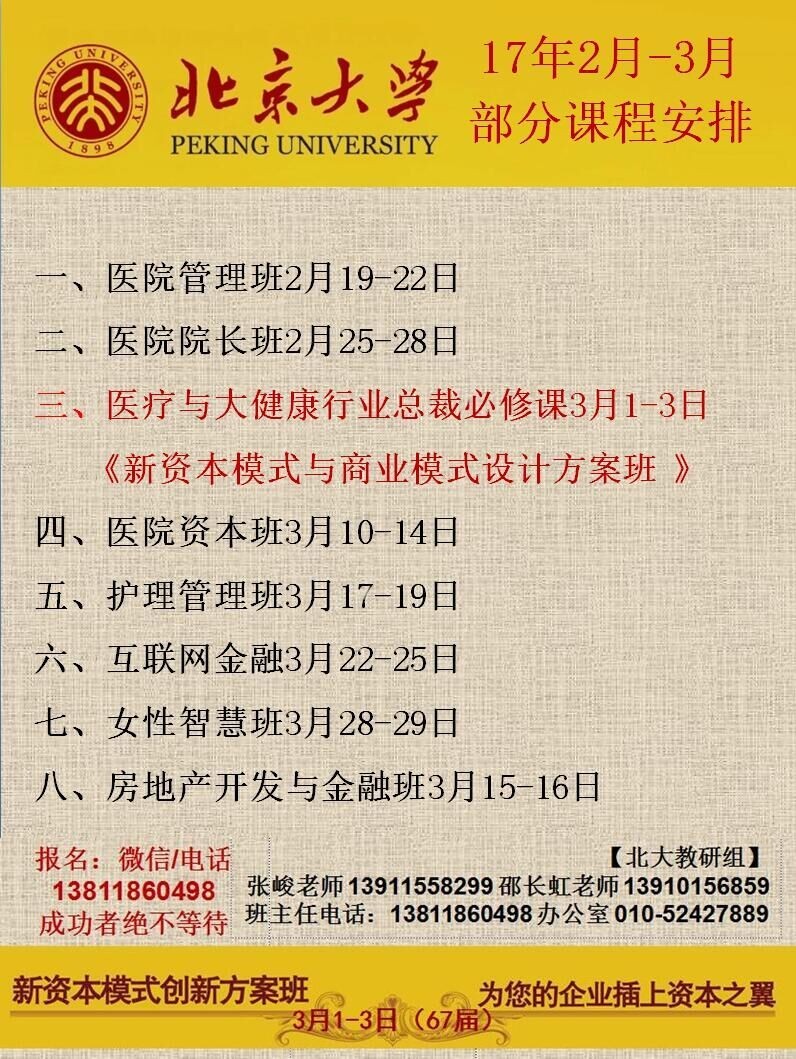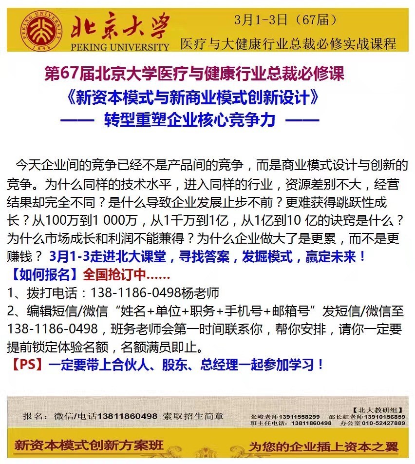 3月1-3日(3天2晚),走进北京大学课堂,寻找答案,发掘模式,赢定未来!