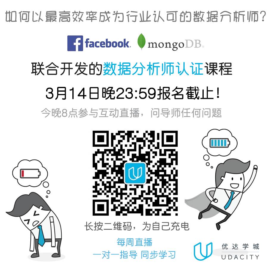 长按二维码关注官方订阅号,发送“DAND【*需确认/设置*】”即可加入答疑群,Udacity 会解答你的问题。