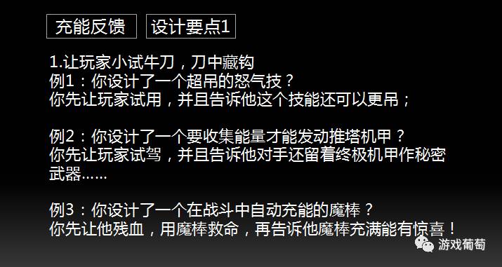 注意:“引”并不是每次充能反馈都必需的,就像你不希望每次进游戏都有开场CG或新手引导。充能反馈的主体仍然是“序破急”。