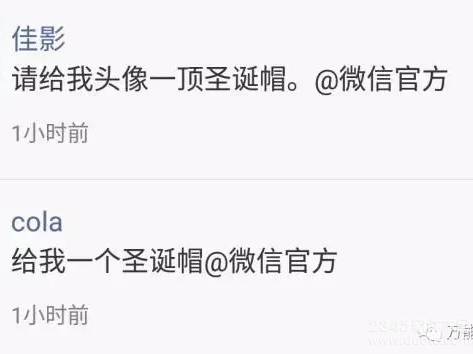 圣诞节刚刚过完,大概最让人印象深刻的就是满屏的@微信官方 了,甭管是@微信官微 @微信官方 还是@微信官网,反正能给我一顶圣诞帽就行。