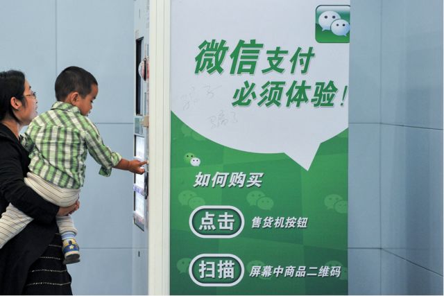 北京地铁站的自助售卖机上,采用微信支付作为购买方式。摄:Imagine China