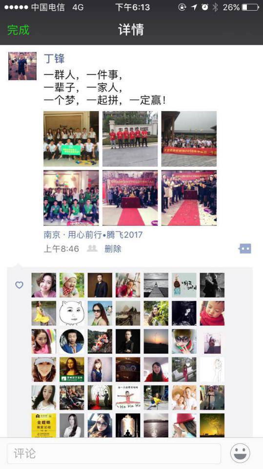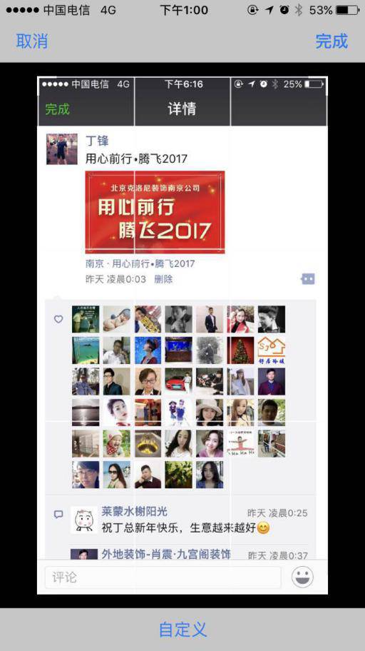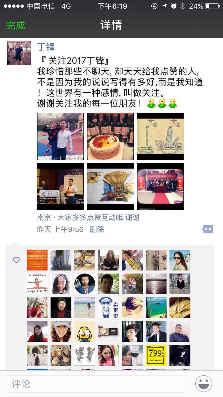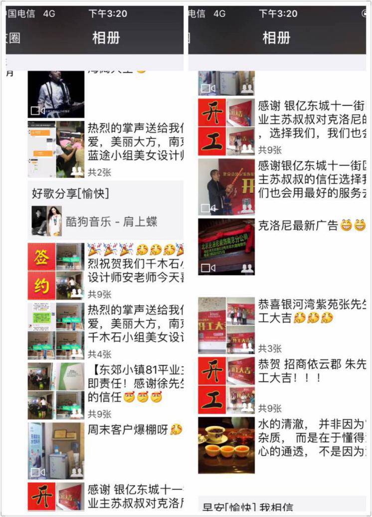 【题记】1月4日,我朋友圈第2个帖子这么写道:“朋友圈是个神奇的地方,展示生活和工作,自然成交客户。/克洛尼装饰丁锋在#一起玩内容#群里图文呈现学习前和学先后的朋友圈营销方法和接单方式变化。/分享是最好的学习方法,听了不是自己的,听了做了可能是自己的,做了又分享了一定是自己的。” 丁锋就抓住了互联网的本质---分享,所以他会取得更大的成就,我们拭目以待。