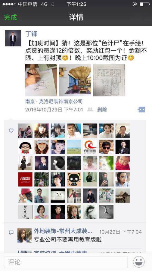 再给大家大家再看看朋友圈的互动的重要性 这个客户是我通过设计师量房让业主加我的,让后我第一时间朋友圈后互动