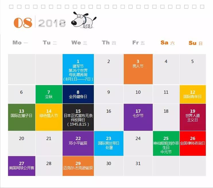 2018年为公历平年,共365天,53周。农历无闰月,共354天,农历戊戌年 【狗年】。21世纪第2个10年,中华人民共和国成立69周年。