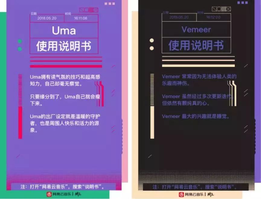 网易云音乐的测试类H5“个人使用说明书”,通过让用户聆听6种声音,生成用户的个性描述,如“XX吃得越少,越会变胖”、“要定期给予XX喂食,他相当单纯”等。
