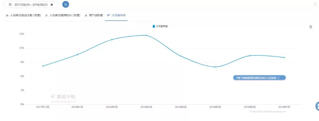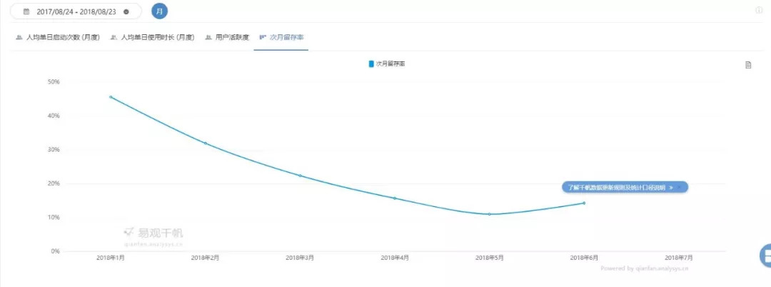 在一款产品的次月留存率普遍在40%—60%的情况下,某款产品竟然出人意料地做出了这样的成绩:次月用户留存低于20%。。