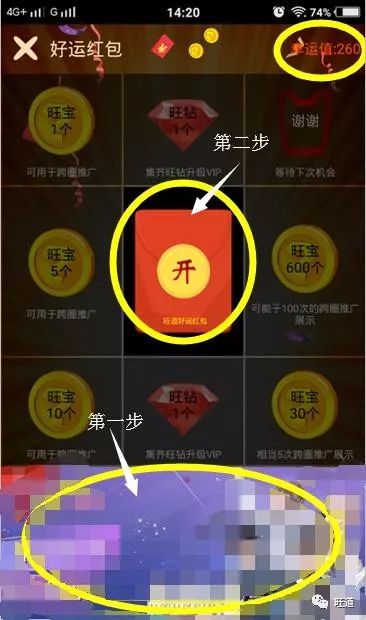 不想花钱,就只有通过抽奖的方式去中奖,点击广告是可以提高“旺钻”的中奖率哟,这样你就可以0成本向陌生朋友圈推广了。如图操作。